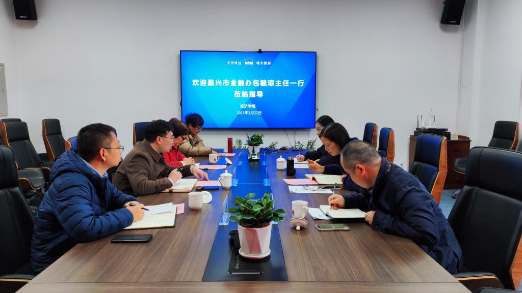 2月22日上午,嘉兴市金融办党组书记、主任包毓琼一行来91黑料 指导和交流。院长文雁兵教授、副院长孙庆刚教授出席座谈会。