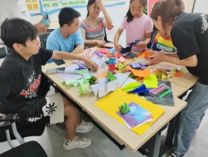 在西马桥社区,团队成员准备了各式彩纸、卡纸和积木等手工材料,20余个孩子们在团队成员的帮助下完成各自的作品。通过这样的方式,一方面激发孩子们的想象力,感受传统手工文化的魅力;另一方面,孩子们亲手制作,做出属于自己的作品,收获一份不一样的喜悦。